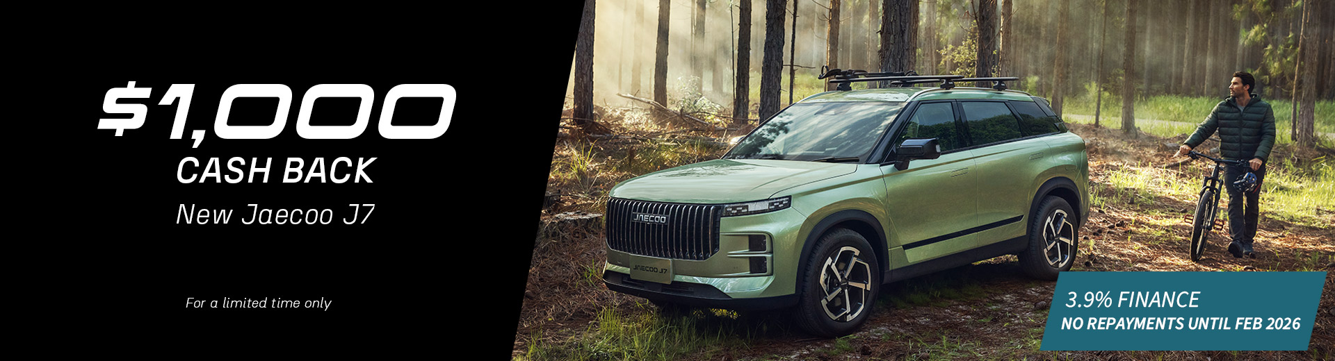 *Terms and Conditions: Purchase any new Omoda Jaecoo model and receive a $1,000 incl. GST ‘Cash Back’ discount off the MSRP, when you purchase between December 1st and December 31st 2025. Cash Back is applied as a discount to the vehicle MSRP at time of purchase and is not redeemable for cash. 3 months deferred repayments offer is based on a 10% deposit and an interest rate of 3.9% p.a. is fixed for the 36-month term of the loan and is available on all new Omoda Jaecoo Models from 1st of December 2025 to 31st December 2025. If you defer your payments up to 3 months, interest will still accrue during the deferral period and will be added to and form part of the loan, together with applicable fees. Payments will begin on the date falling 3 months after the first schedule repayment date. You must repay the full amount of the loan, and your repayments will be spread over the remaining loan term. This offer is not available in conjunction with any other finance offer. The loan term cannot exceed 36 months, and structured payments are not available on this offer. A PPSR fee of $10.35, a monthly maintenance fee of $2, a UDC loan fee of $130, a dealer origination fee of $395 will apply. The loan is provided by UDC Finance Limited. UDC’s lending criteria and standard terms and conditions apply. Not available in conjunction with any other offer. Offer ends December 31st 2025 or while stock last. Chery Motor New Zealand Limited reserves the right to remove or adjust this offer at any time.