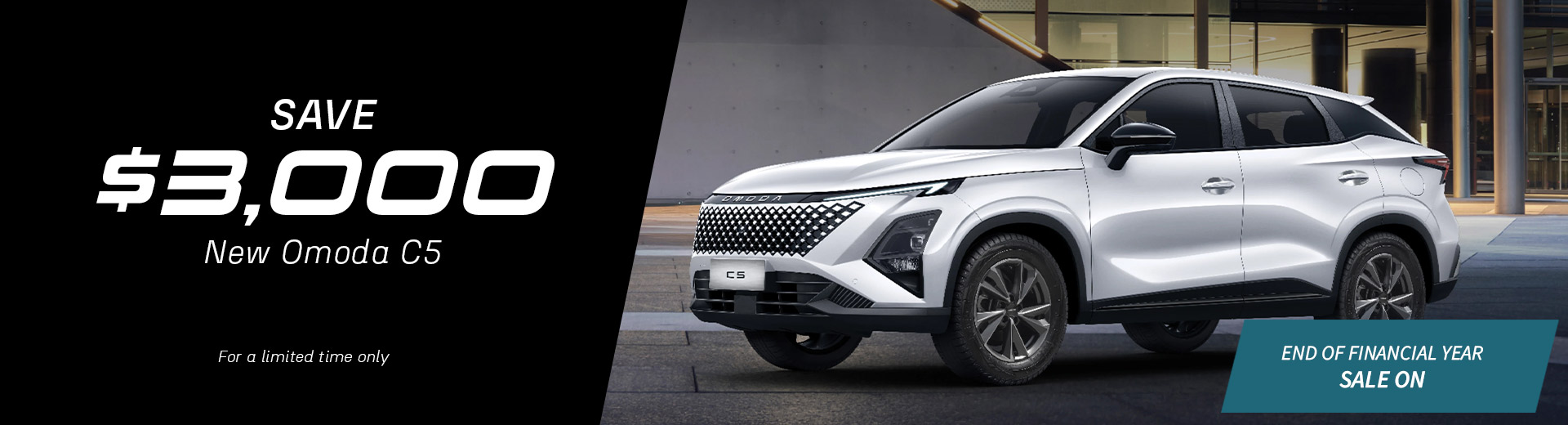 *Terms and Conditions: End of Financial Year Sale offers available on eligible new Omoda Jaecoo vehicles purchased between 01/02/2026 and 31/03/2026 and delivered by 31/04/26. While stocks last. Offers not redeemable for cash or available to fleet, government or rental buyers. Not available in conjunction with any other offers. Omoda Jaecoo New Zealand reserves the right to extend, modify or withdraw this offer in its sole discretion.